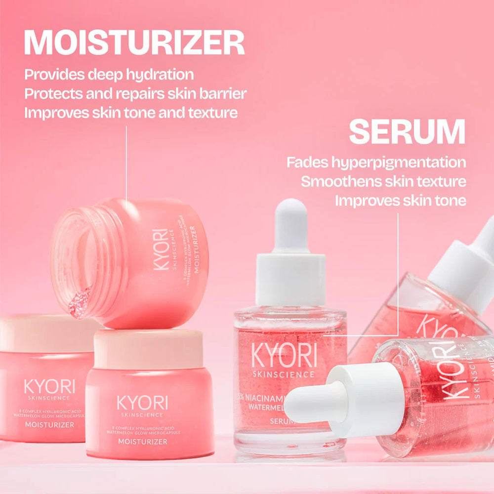 Both serum and moisturizer absorb quickly. Skin looks bright, smooth, and healthy after a few uses.